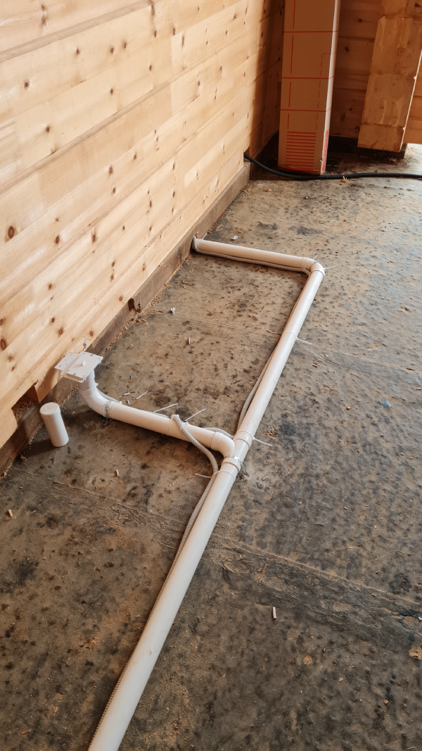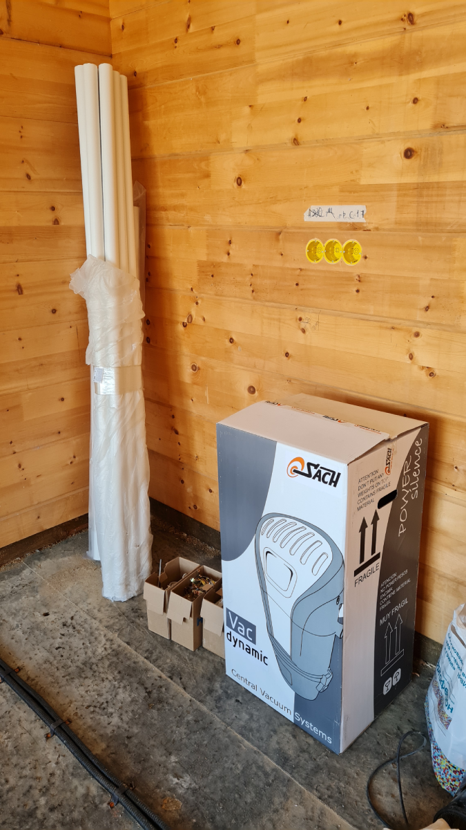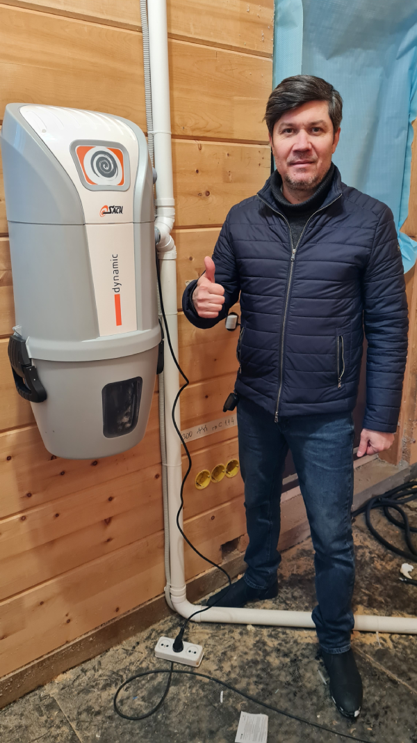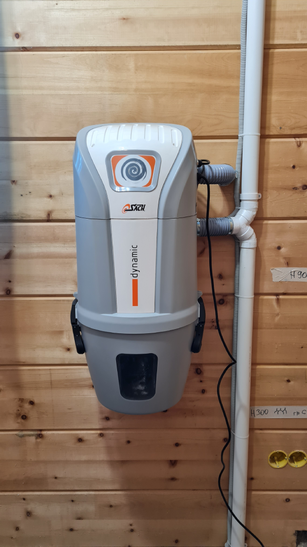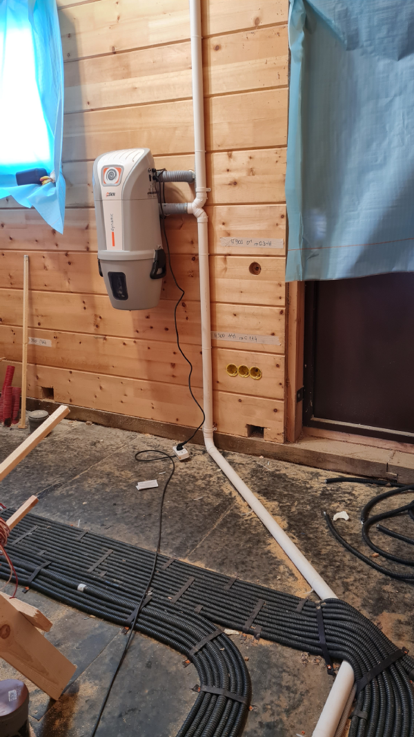 He aquí un ejemplo de instalación de un sistema central de extracción de polvo en una casa de madera de cedro siberiano.