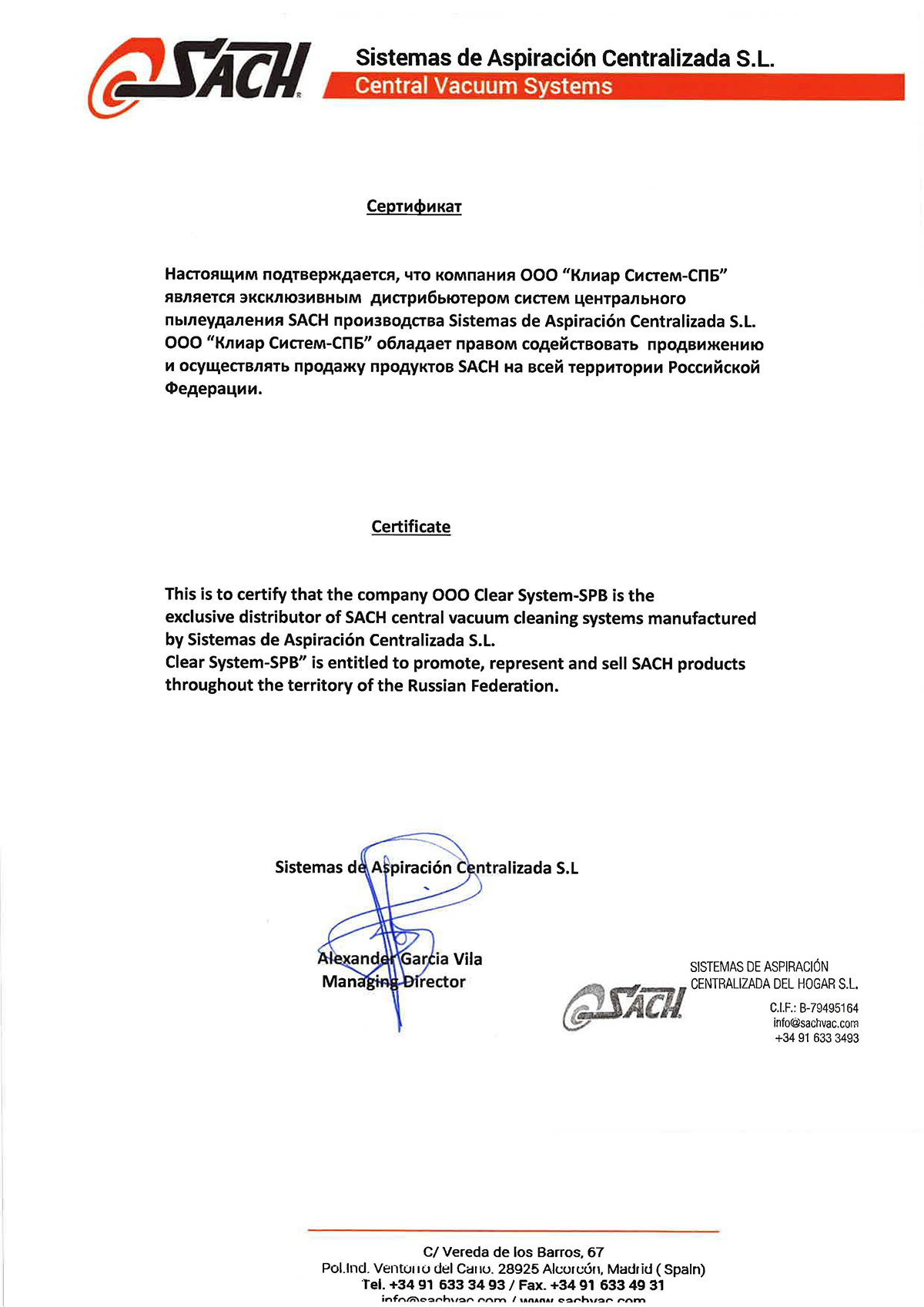 Clear System-SPB es representante oficial de la marca Sach en la Comunidad Valenciana. Por eso ofrecemos condiciones de entrega favorables.