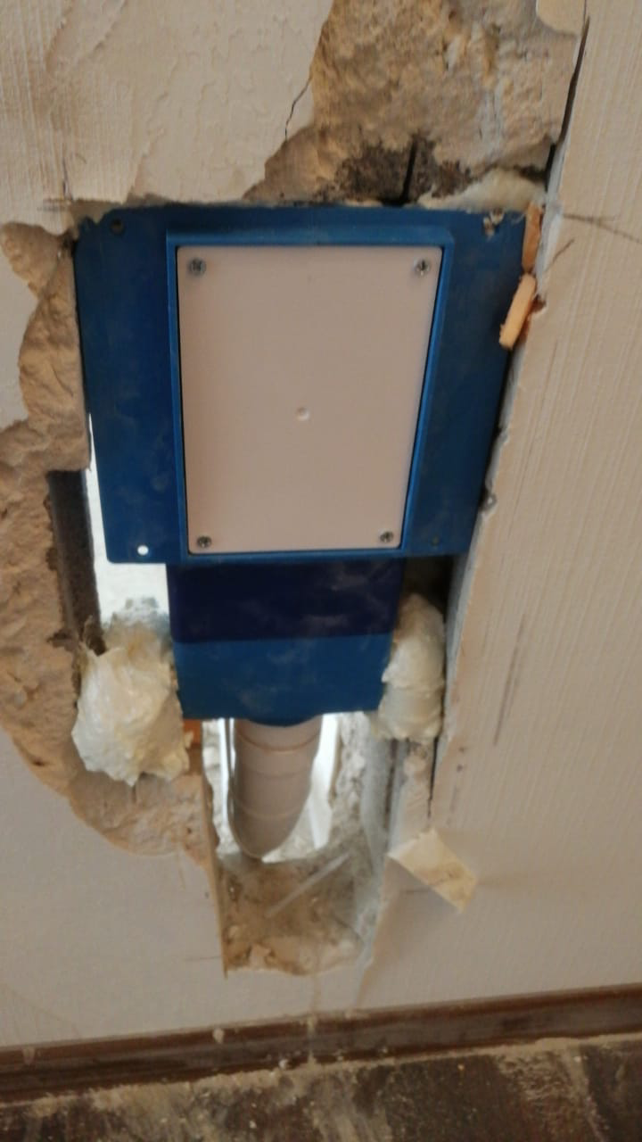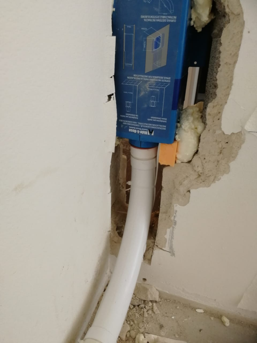 Debido a que el piso no es grande, propusimos la decisión de retirar la bomba neumática de la cocina e instalar un punto del sistema HIDE-A-NOSE (almacenamiento oculto de la manguera), con una longitud de manguera de 10 metros. Fue necesario cortar el tabique para sacar la parte de montaje del sistema Hiday-A-Nosé.